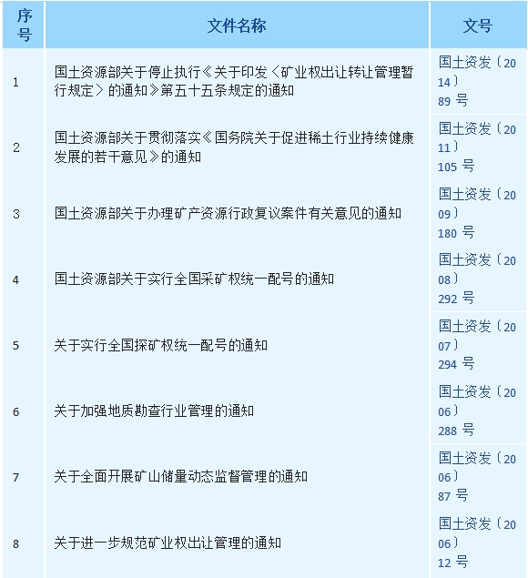 日前,《自然資源部第六批廢止的規(guī)范性文件目錄》公布,廢止16件涉及礦產(chǎn)資源管理的相關(guān)規(guī)范性文件(詳見下表)。