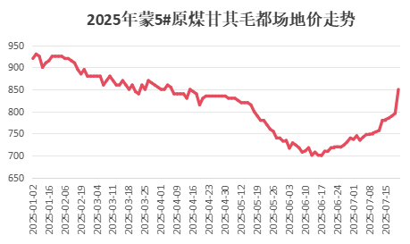 近期成交也明顯回暖,貿(mào)易商和下游終端開(kāi)始加大補(bǔ)庫(kù),蒙煤價(jià)格也同步上漲。截至7月23日,蒙5#原煤口岸報(bào)價(jià)900元/噸,較前期低點(diǎn)上漲200元/噸左右。競(jìng)拍表現(xiàn)同樣強(qiáng)勢(shì),本月8日進(jìn)行了三場(chǎng)Erdenes Tavantolgoi JSC公司的蒙5#原煤競(jìng)拍,全部溢價(jià)成交,成交價(jià)分別為87.7$/噸、88.2$/噸、90.2$/噸,總成交量22.4萬(wàn)噸。