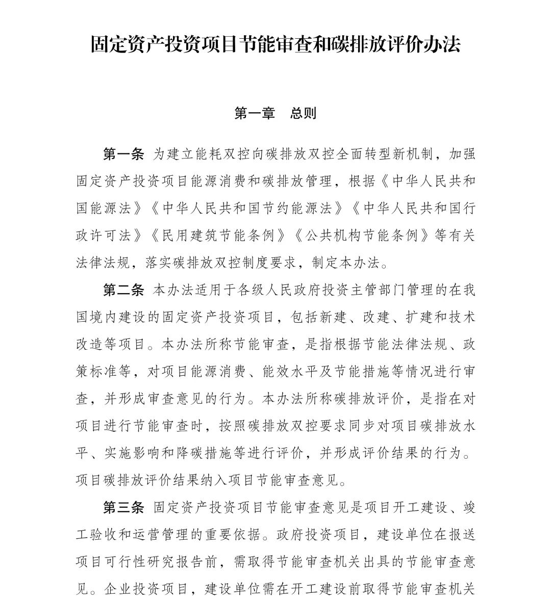 《固定資產(chǎn)投資項目節(jié)能審查和碳排放評價辦法》公布