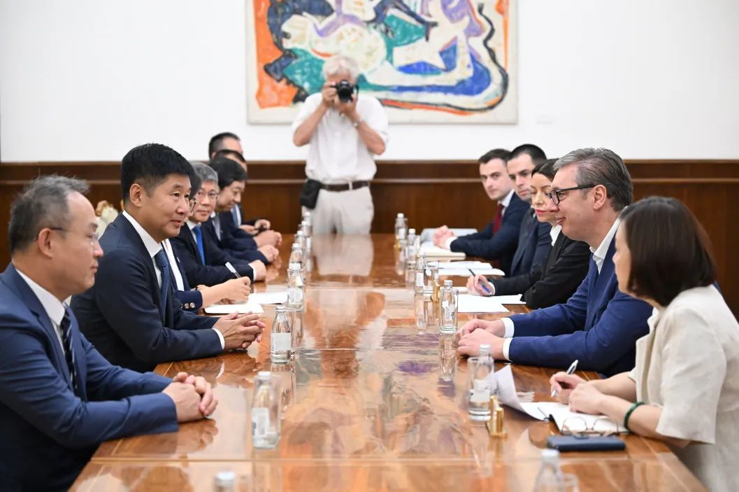 塞爾維亞當(dāng)?shù)貢r(shí)間7月24日,塞爾維亞總統(tǒng)武契奇在貝爾格萊德會(huì)見河鋼集團(tuán)董事長(zhǎng)劉鍵。中國(guó)駐塞爾維亞大使李明,塞爾維亞副總理兼經(jīng)濟(jì)部長(zhǎng)阿德里亞娜·梅薩羅維奇、內(nèi)外貿(mào)易部部長(zhǎng)婭戈達(dá)·拉扎雷維奇,河鋼集團(tuán)總會(huì)計(jì)師胡志剛參加會(huì)見。