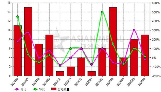 北京(亞洲金屬)2025-08-04 6月份中國共計9家白剛玉生產(chǎn)商增產(chǎn),上個月為8家,去年同期為11家。6月份增產(chǎn)白剛玉生產(chǎn)商分布為山東5家,河南4家。