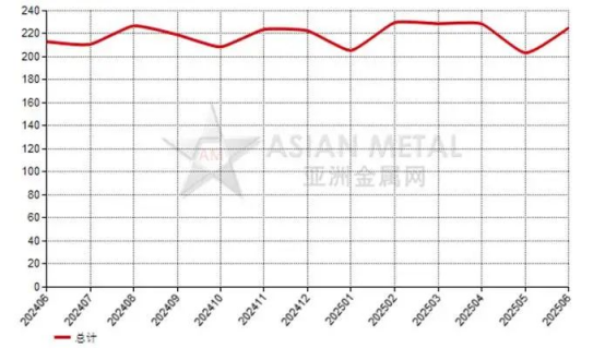 2025年6月份中國重燒鎂砂出口額23,693,499.00美元,去年同期為29,903,697.00美元,上月為18,970,990.00美元,同比下滑20.77%,環(huán)比增長24.89%。出口均價225.05美元/公噸,去年同期為213.11美元/公噸,上月為203.39美元/公噸。